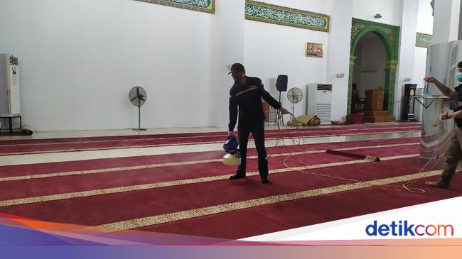 Cegah Corona Masjid Raya Ahmad Yani Manado Disemprot Disinfektan Okezone News